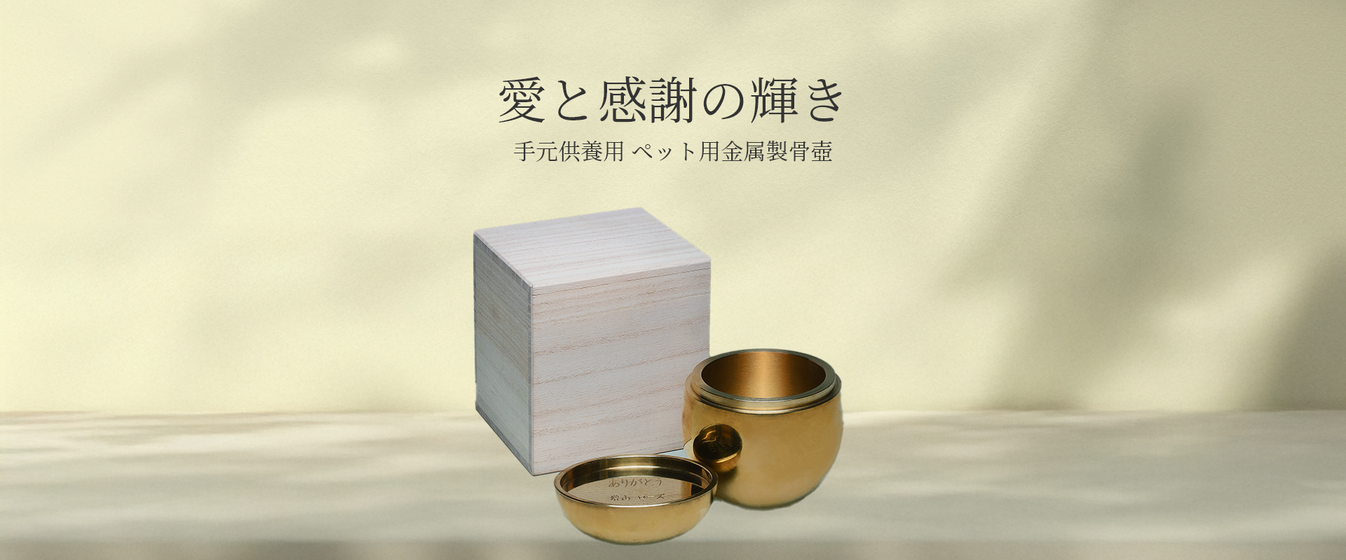 金属製骨壺は、ペットの遺骨を永く大切に保管できる丈夫で耐久性の高い素材です。